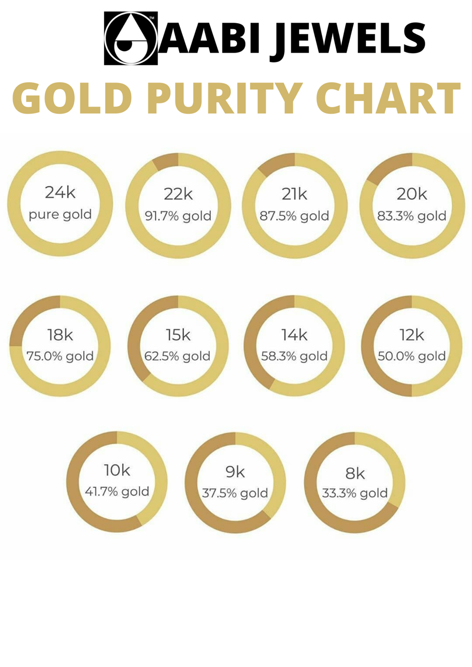 There is a variety of gold purity levels used for rings, bracelets, earrings and other fine jewellery in different countries. Each level of gold purity has its advantages and disadvantages, which affect the hardness, durability and price of a jewellery piece.