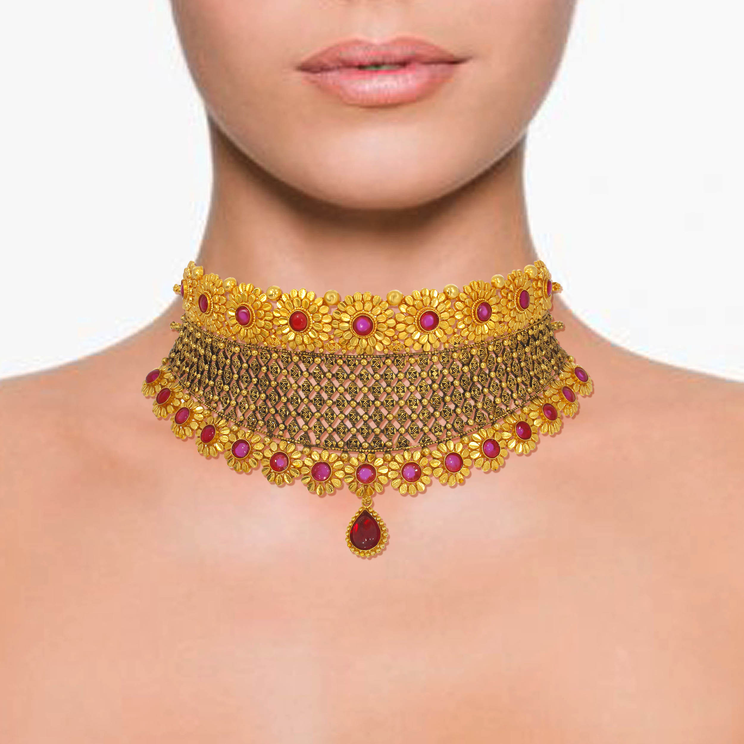 • ANGEL AABI JEWELS 22CT BIS HALLMARK GEMSTONE GOLD NECKLACE FOR