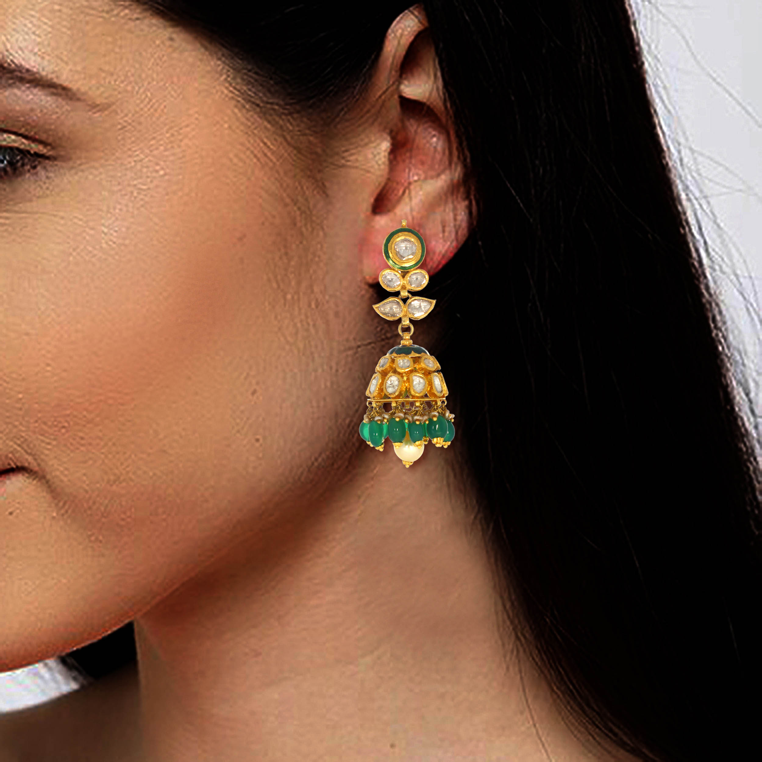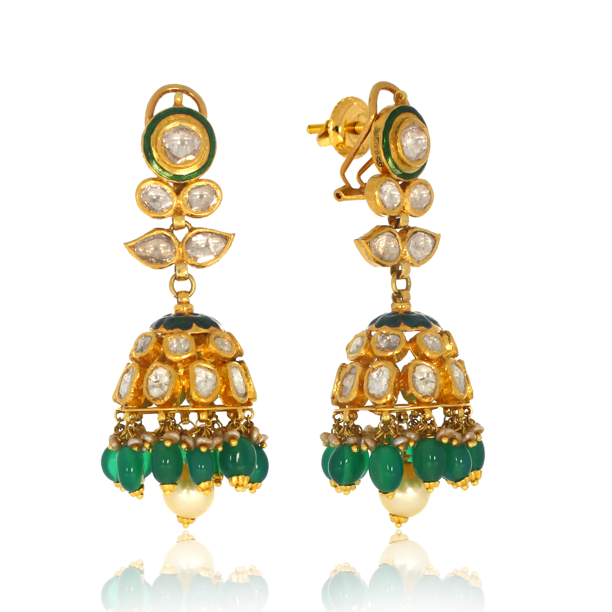 JOOMAR AABI JEWELS 22CT  BIS HALLMARK GOLD GEMSTONE EARRINGS FOR  WOMEN