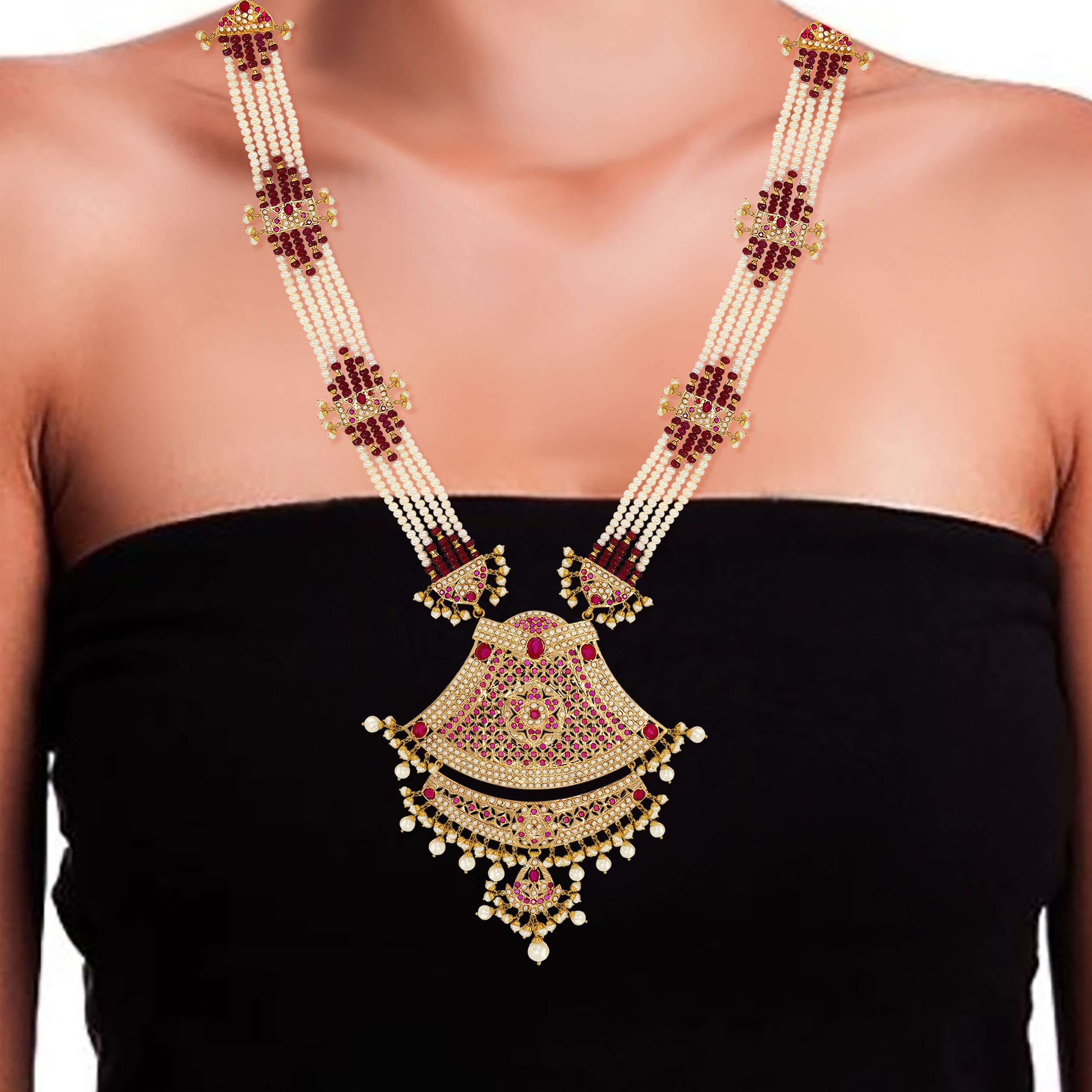 • KINAR AABI JEWELS 22CT BIS HALLMARK GOLD GEMSTONE NECKLACE FOR