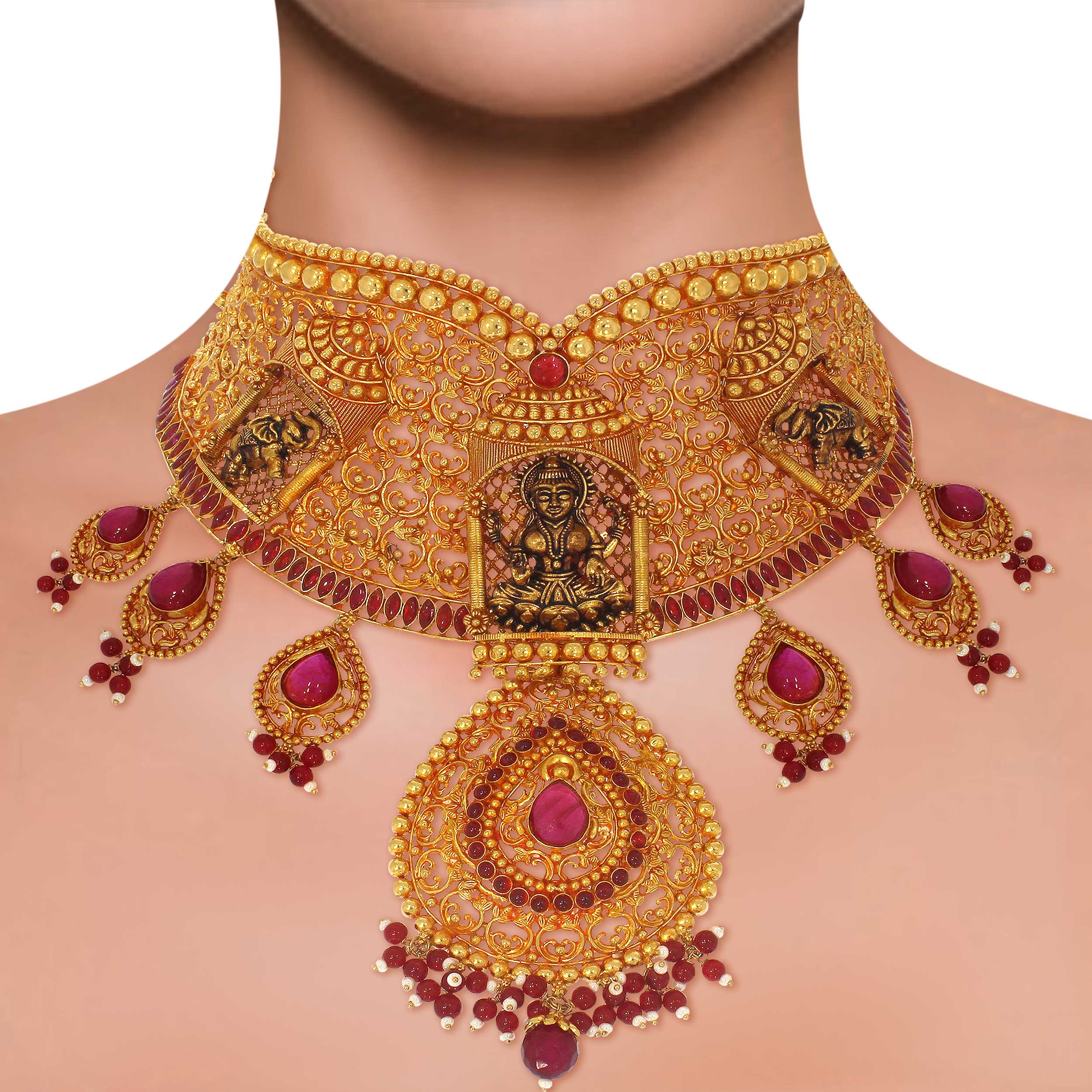 • MANU AABI JEWELS 22CT BIS HALLMARK GEMSTONE GOLD NECKLACE FOR