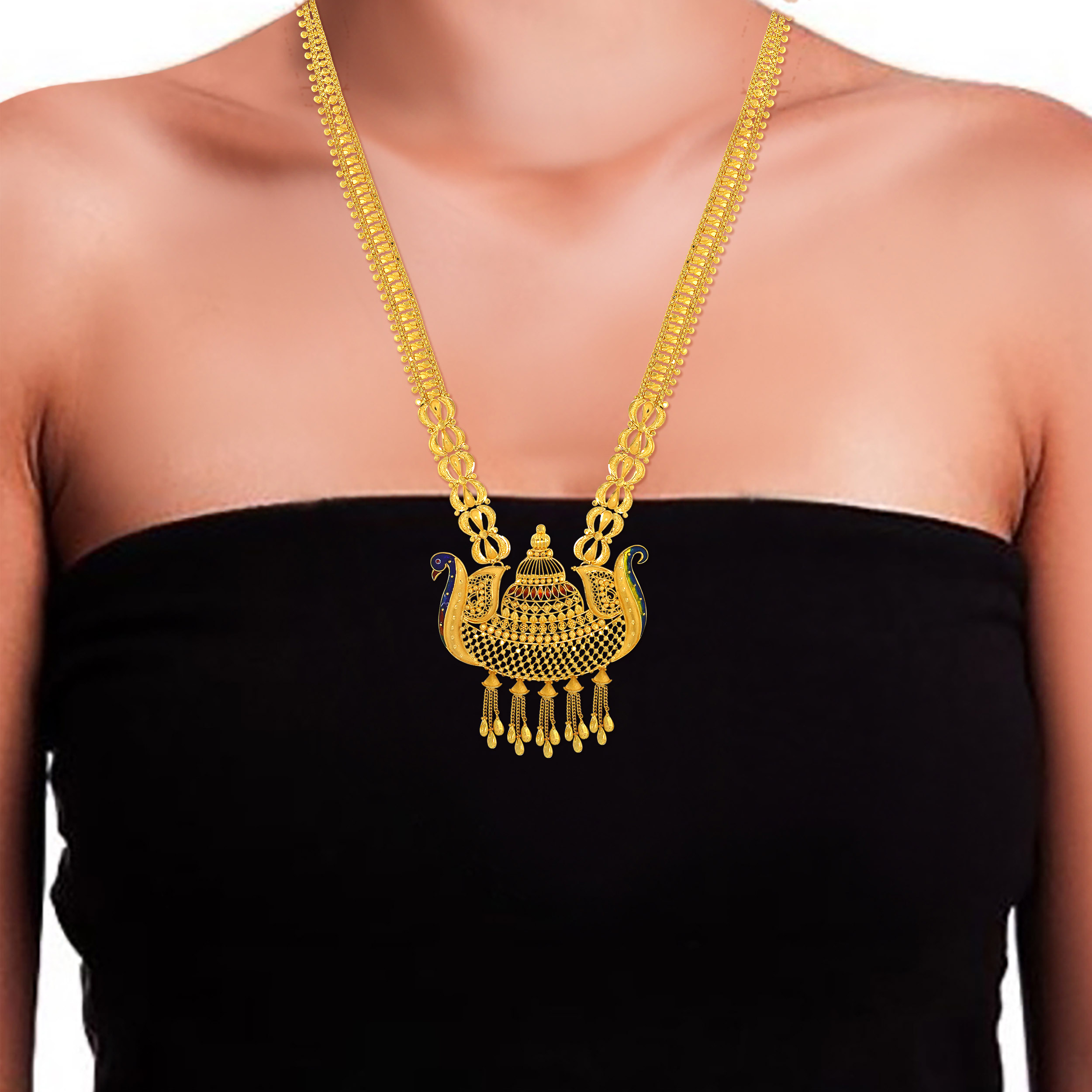 • PANKH AABI JEWELS 22CT BIS HALLMARK GOLD LONG NECKLACE FOR WOMA