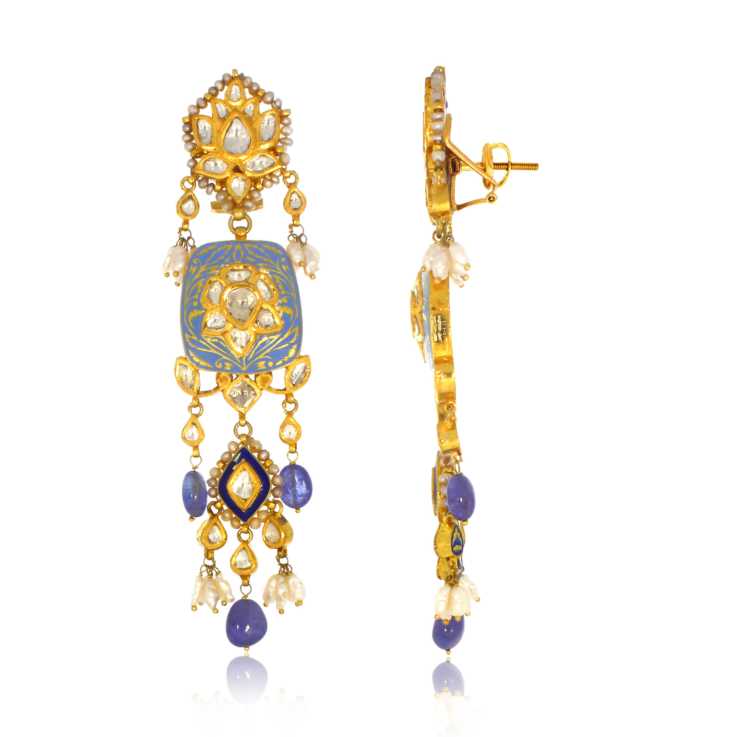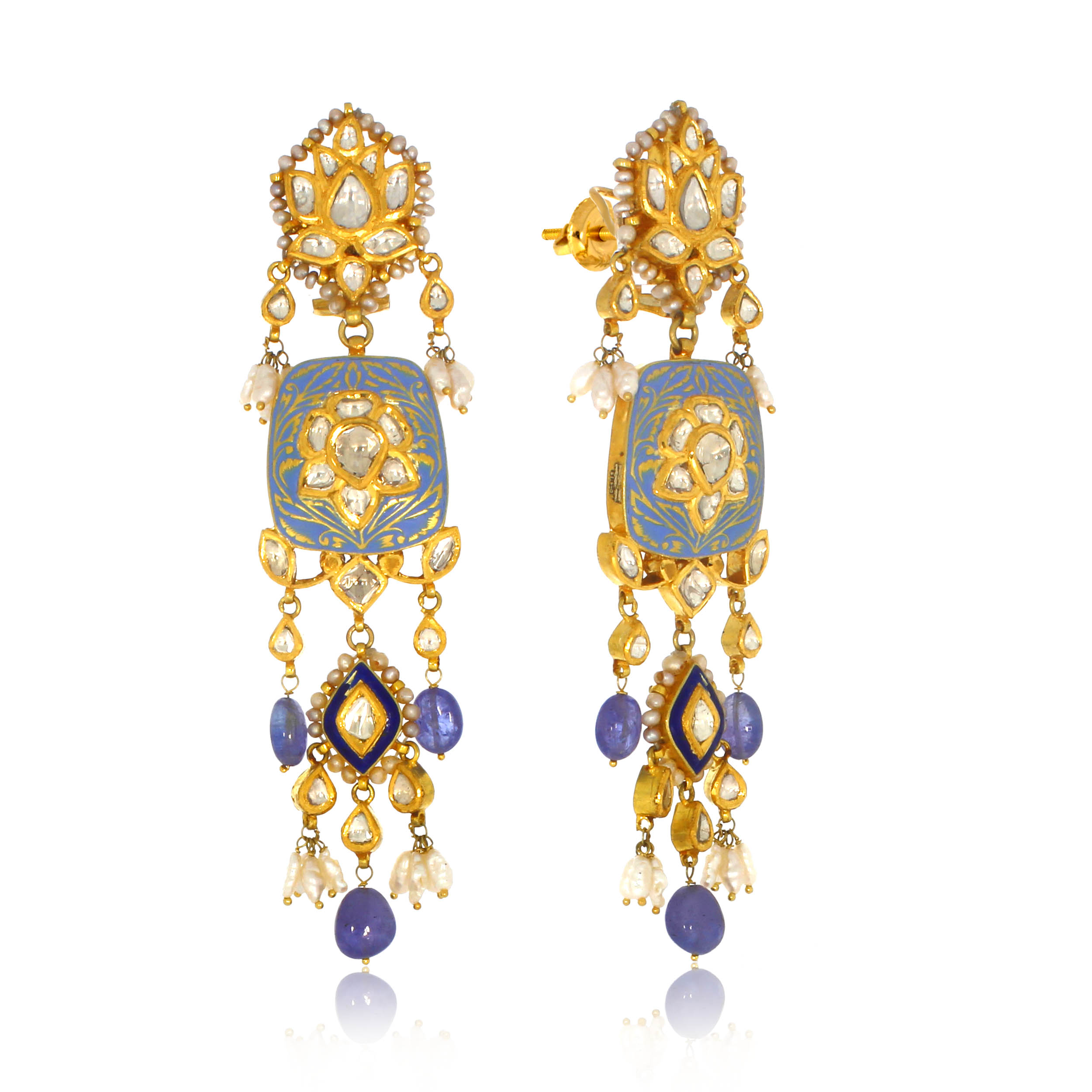 • SEM AABI JEWELS 22CT BIS HALLMARK GOLD GEMSTONE EARRINGS FOR W