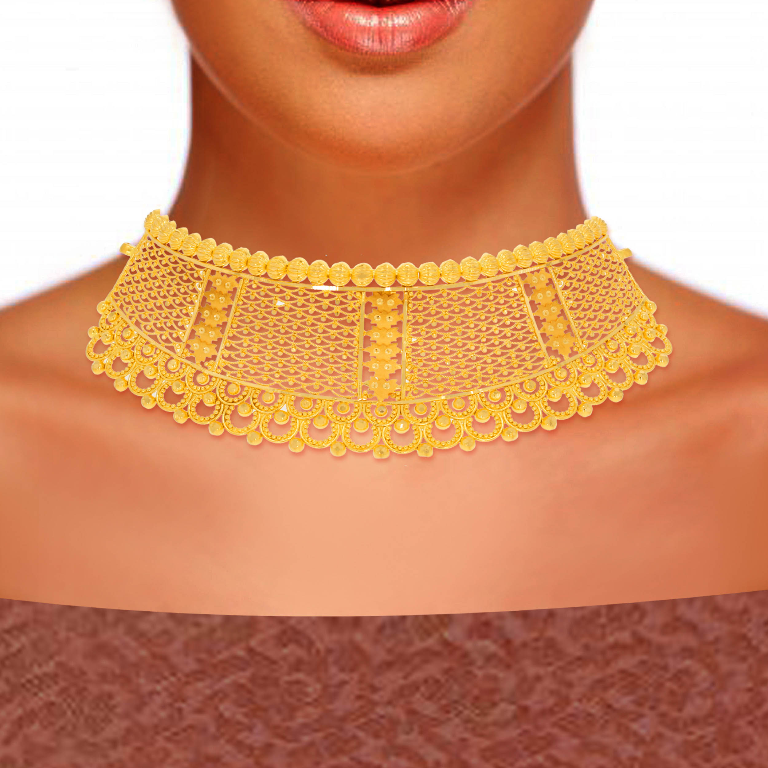 SILCO AABI JEWELS 22CT BIS HALLMARK GOLD CHOKER NECKLACE FOR WOMAN