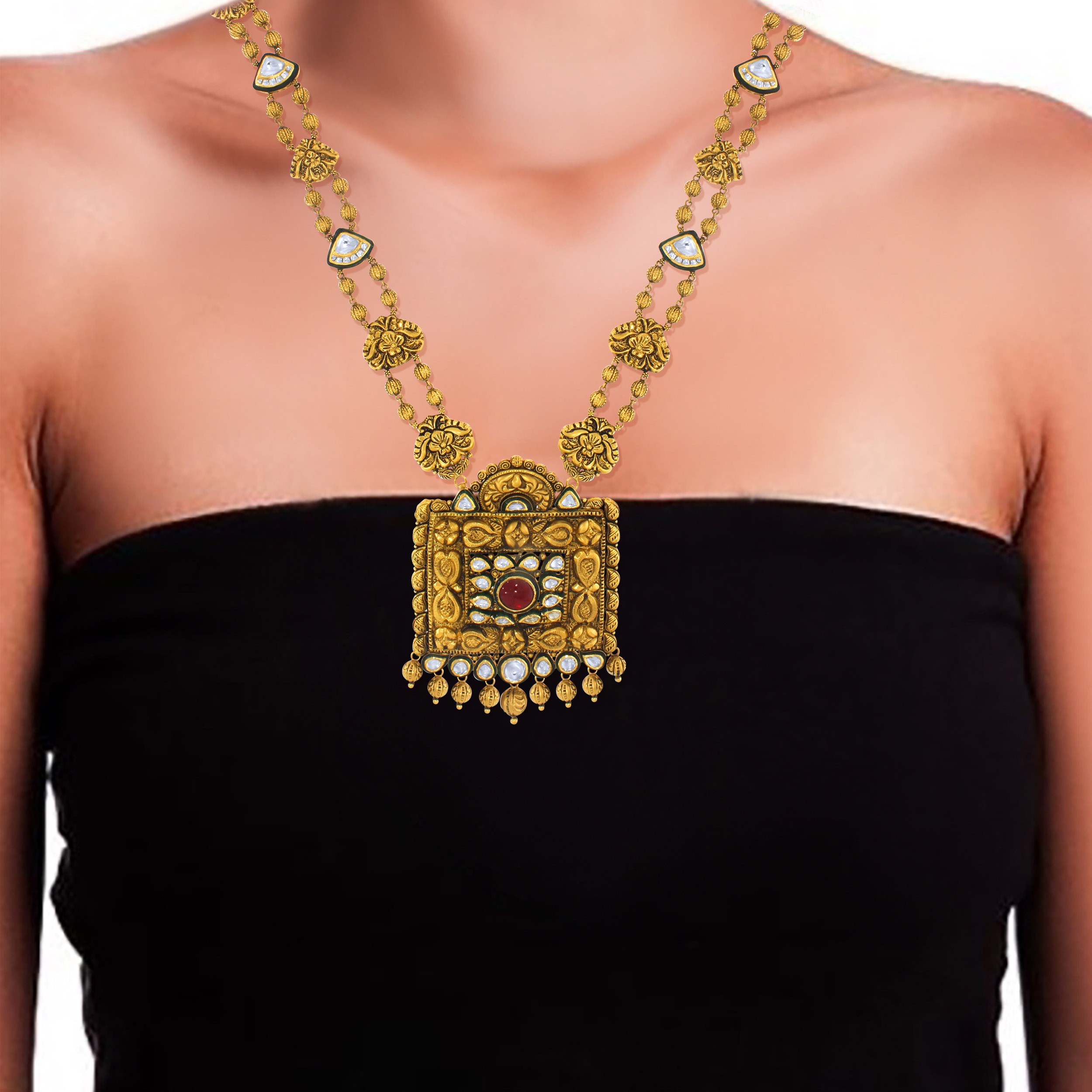 TEEN  AABI JEWELS 22CT BIS HALLMARK GOLD GEMSTONE  LONG NECKLACE FOR WOMAN