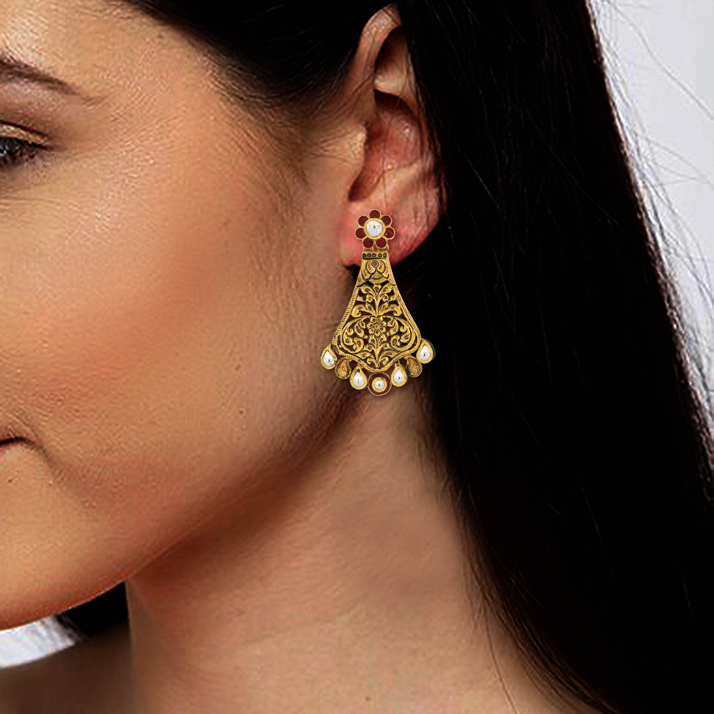 • VIDHYA AABI JEWELS 22CT BIS HALLMARK GOLD GEMSTONE EARRINGS FO